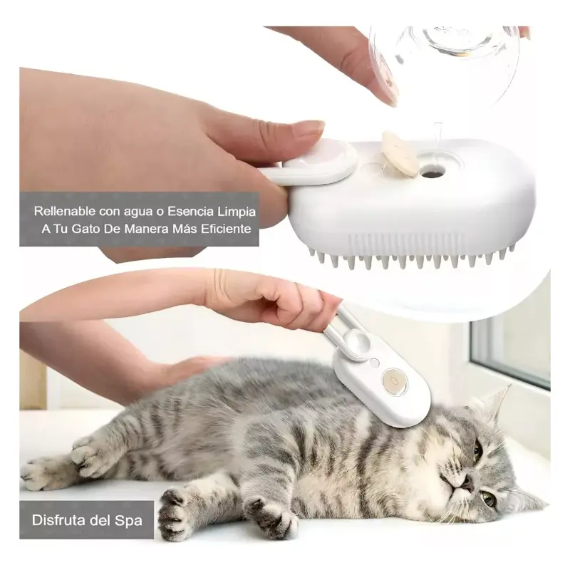 - Este cepillo utiliza tecnología a vapor de vanguardia para aflojar y eliminar de manera hábil el polvo y la suciedad acumulados en el pelaje de tu gato. El uso del vapor prioriza la seguridad y proporciona una experiencia de limpieza suave, dejando a tu mascota con una apariencia impecablemente saludable.