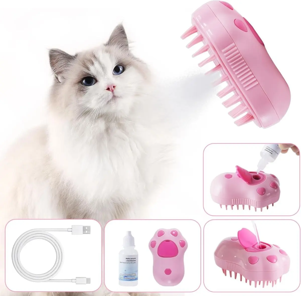 Este dispositivo 3 en 1 no solo cepilla, sino que también masajea y utiliza vapor para eliminar la suciedad y el pelo suelto, mejorando la salud del pelaje de tus mascotas.