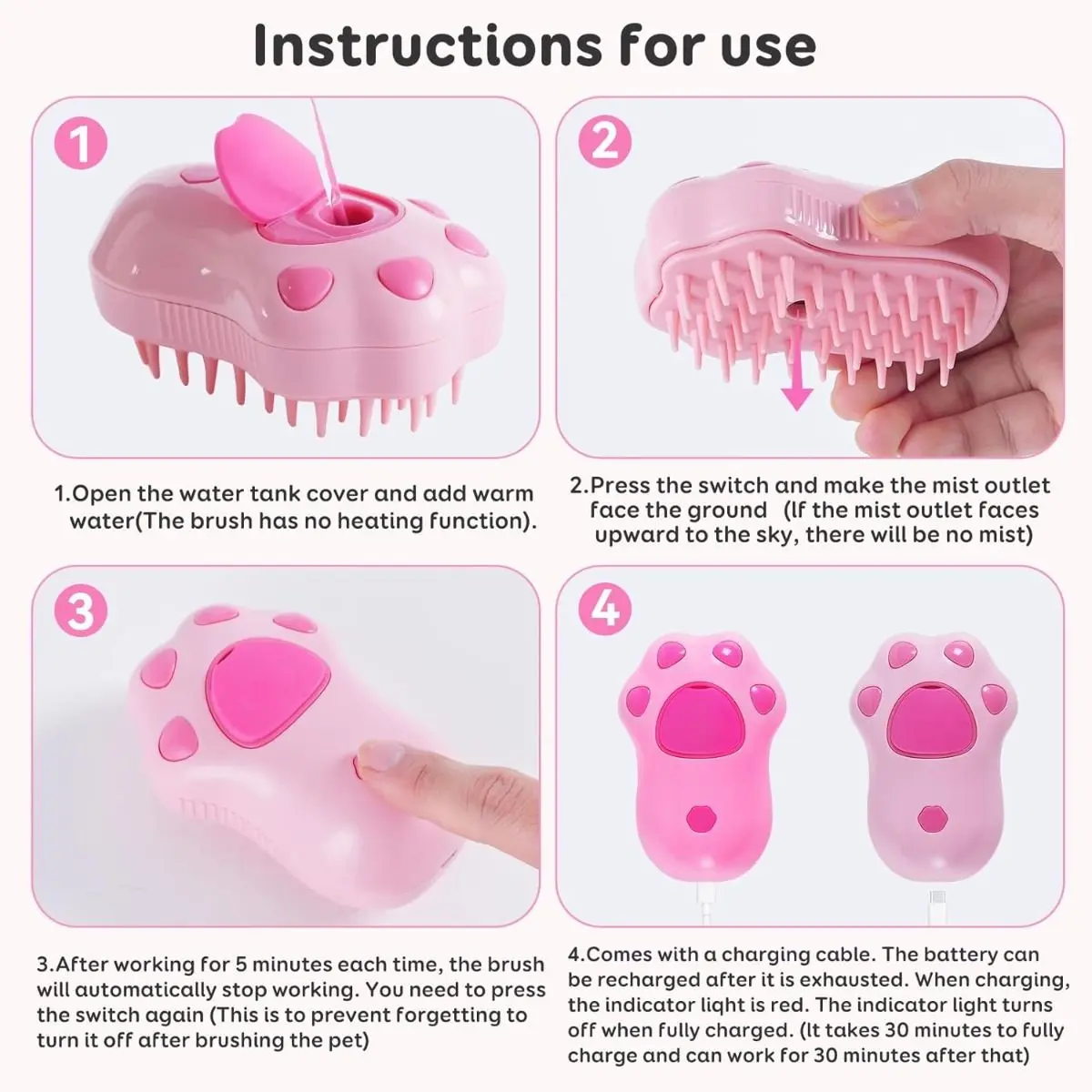 Ideal para perros y gatos, el cepillo de vapor es fácil de usar y cuenta con una batería recargable para mayor comodidad.